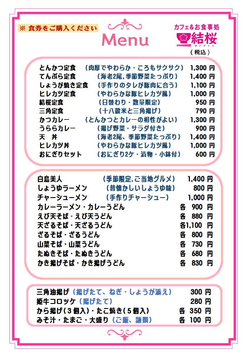 お食事処・レストラン「結桜」 阿賀野市五頭温泉郷村杉温泉うららの森 |